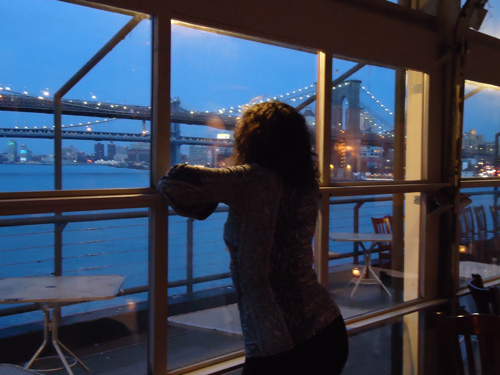 Here’s fantasy author Ellen Kushner checking out the gorgeous evening lights!