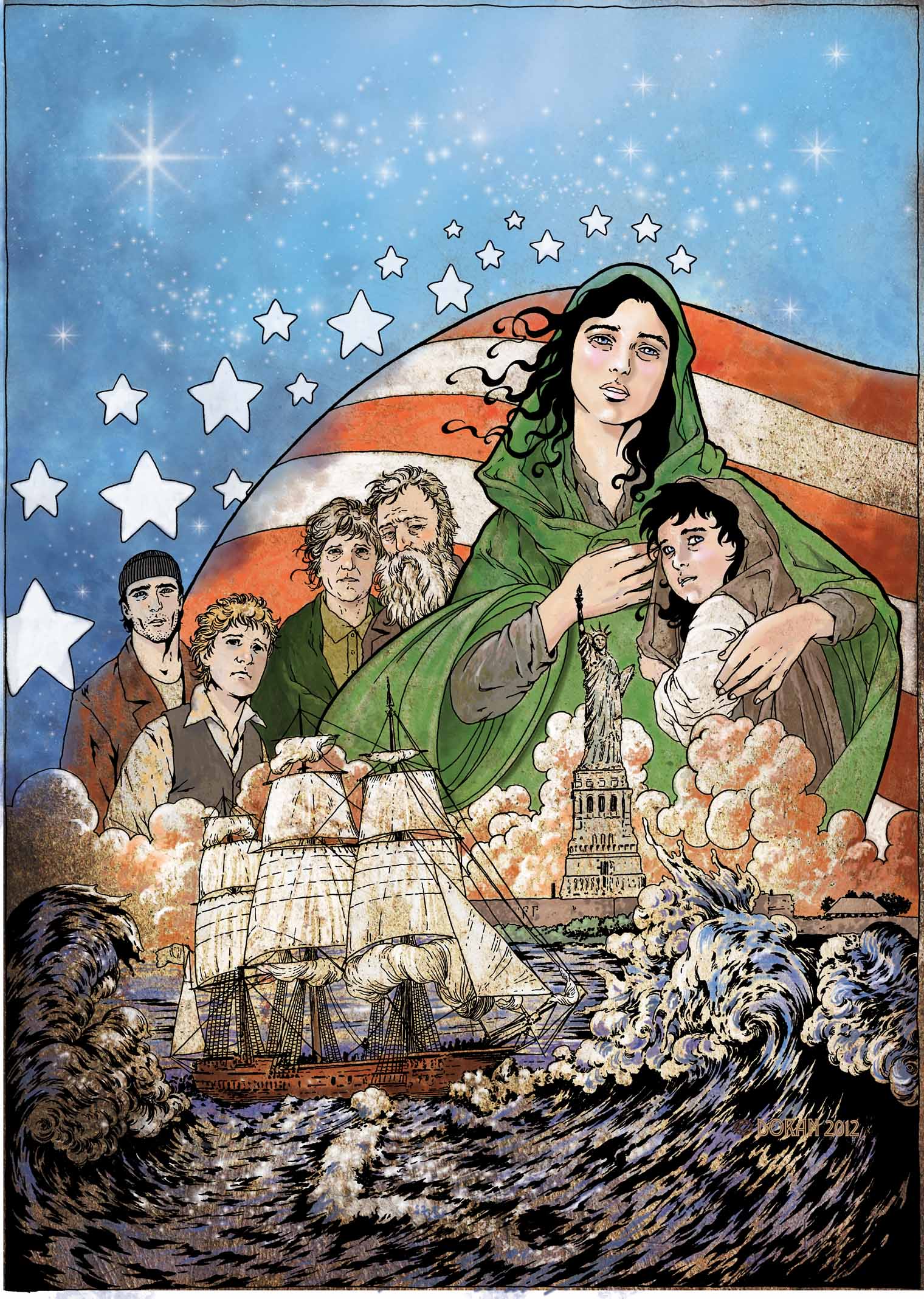 I did the cover for the St Patrick’s Day edition of Irish Echo, and I was overwhelmed when Mr O Muilleoir told me a copy of the framed cover was presented by Deputy First Minister Martin McGuinness of Northern Ireland to President Obama. Alas, I do not have a photo of this event, but am honored and grateful. Here’s a copy of the cover art.