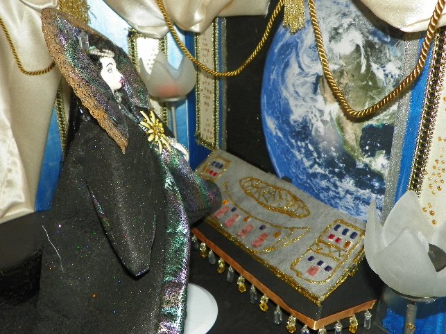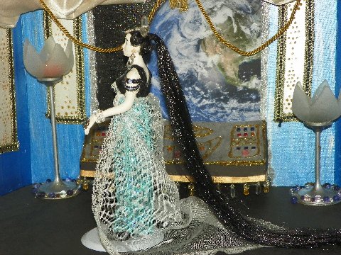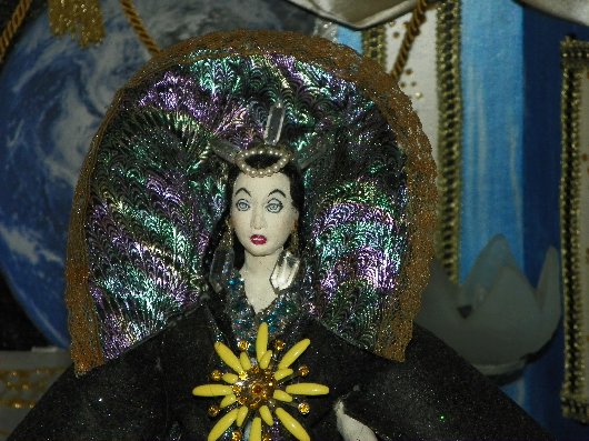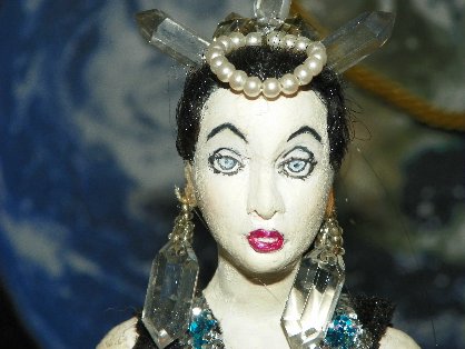 Looks at those earrings and that hairpiece! Those are real crystals! And Allen made the entire doll head and body himself.