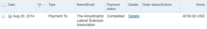 Here are screen shots of my donation to ALS.
