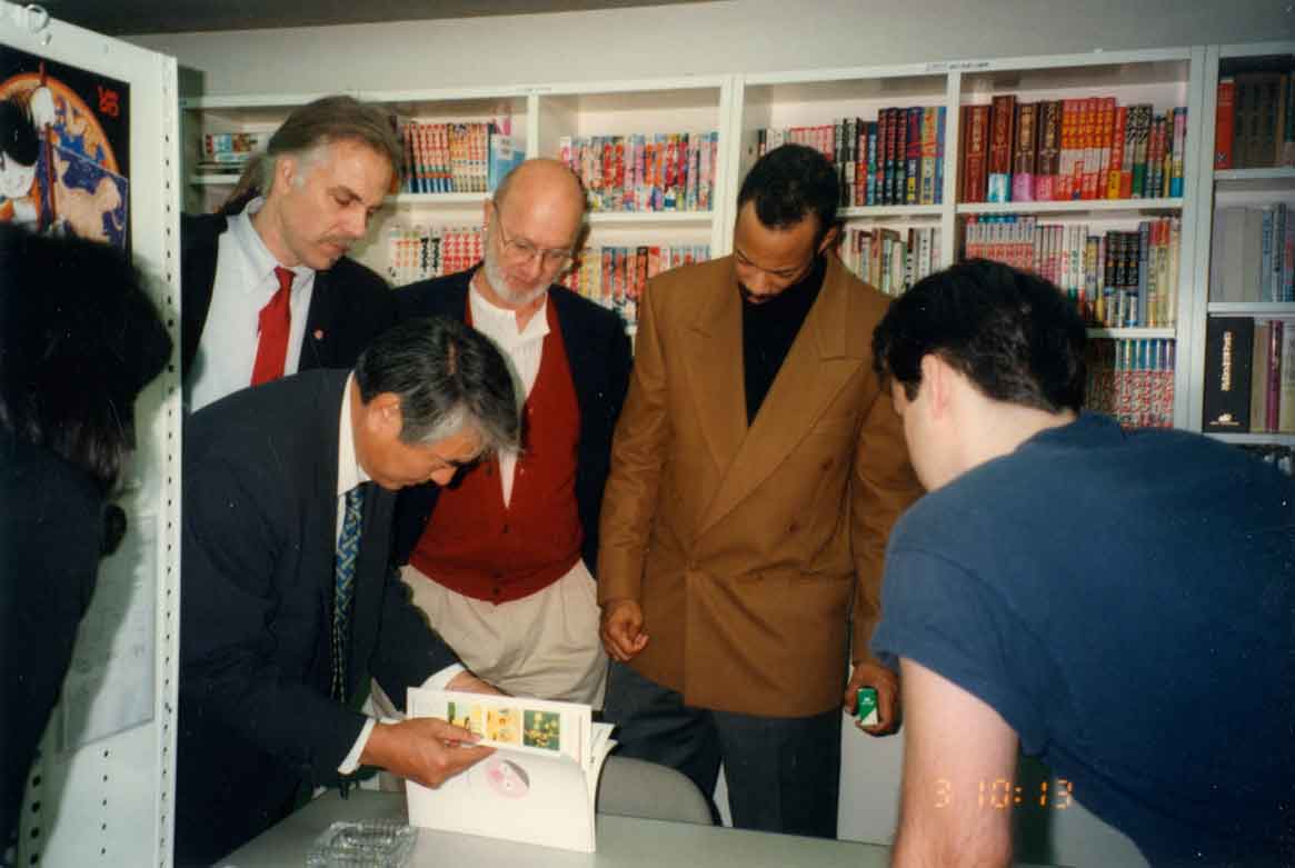 Here is Takayuki Matsutani of Tezuka Productions, Fred Schodt, author of MANGA! MANGA! The world of Japanese Comics, Oscar and Pulitzer Prize winning cartoonist Jules Feiffer, Cartoonist Denys Cowan, and Jeff Smith at the Shueisha publishing offices.